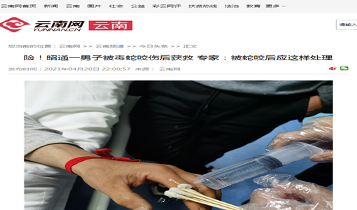【云南网】险!昭通一男子被毒蛇咬伤后获救 专家:被蛇咬后应这样处理