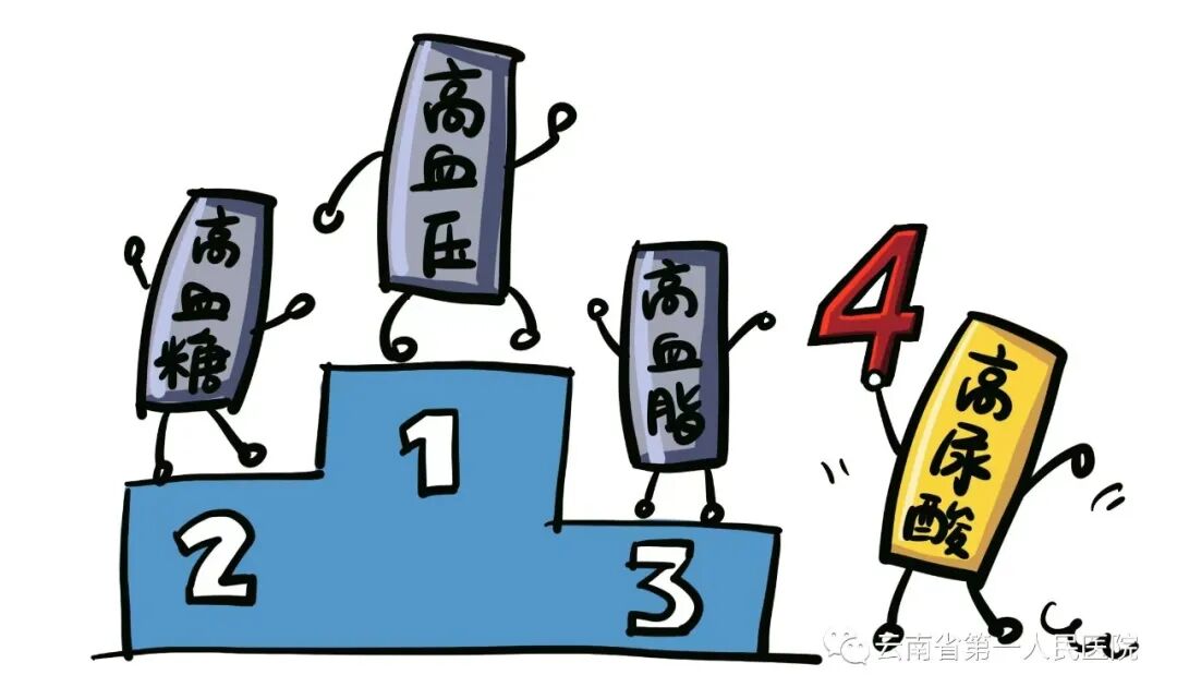 根据现有数据显示,只有5%—10%的高尿酸血症会发展为痛风,所以痛风只是高尿酸血症的冰山一角,长期血尿酸增高会对人体多个系统有不同程度的影响,无症状高尿酸血症虽然没有显著关节症状,但其危害性是潜在的和持续性的,长期高尿酸血症对机体其他脏器的影响更大。 •痛风 高尿酸血症是痛风的罪魁祸首,痛风患病率随着血尿酸水平的升高而升高,痛风的主要表现有:痛风性关节炎、痛风石沉积及痛风性肾病等。 •心脑血管疾病 可溶性尿酸增高时会损害血管内皮功能,多项国内外临床研究表明:血尿酸水平是急性心肌梗死、脑卒中和所有心血管事件的独立危险因素:血尿酸每升高86μmol/L预测心血管事件的能力高于总胆固醇升高1.078mmol/L和血压升高21.3mmHg。高尿酸血症也是急、慢性心力衰竭死亡的独立预测指标。 •肾脏疾病 高尿酸血症也会持续对肾脏功能造成损伤,包括慢性尿酸盐肾病、肾结石、肾功能衰竭等肾病。 •代谢综合征 高尿酸血症与肥胖、高血压、血脂异常、高血糖症、冠心病及胰岛素抵抗等代谢综合征密切相关,是2型糖尿病发生发展的独立危险因素。